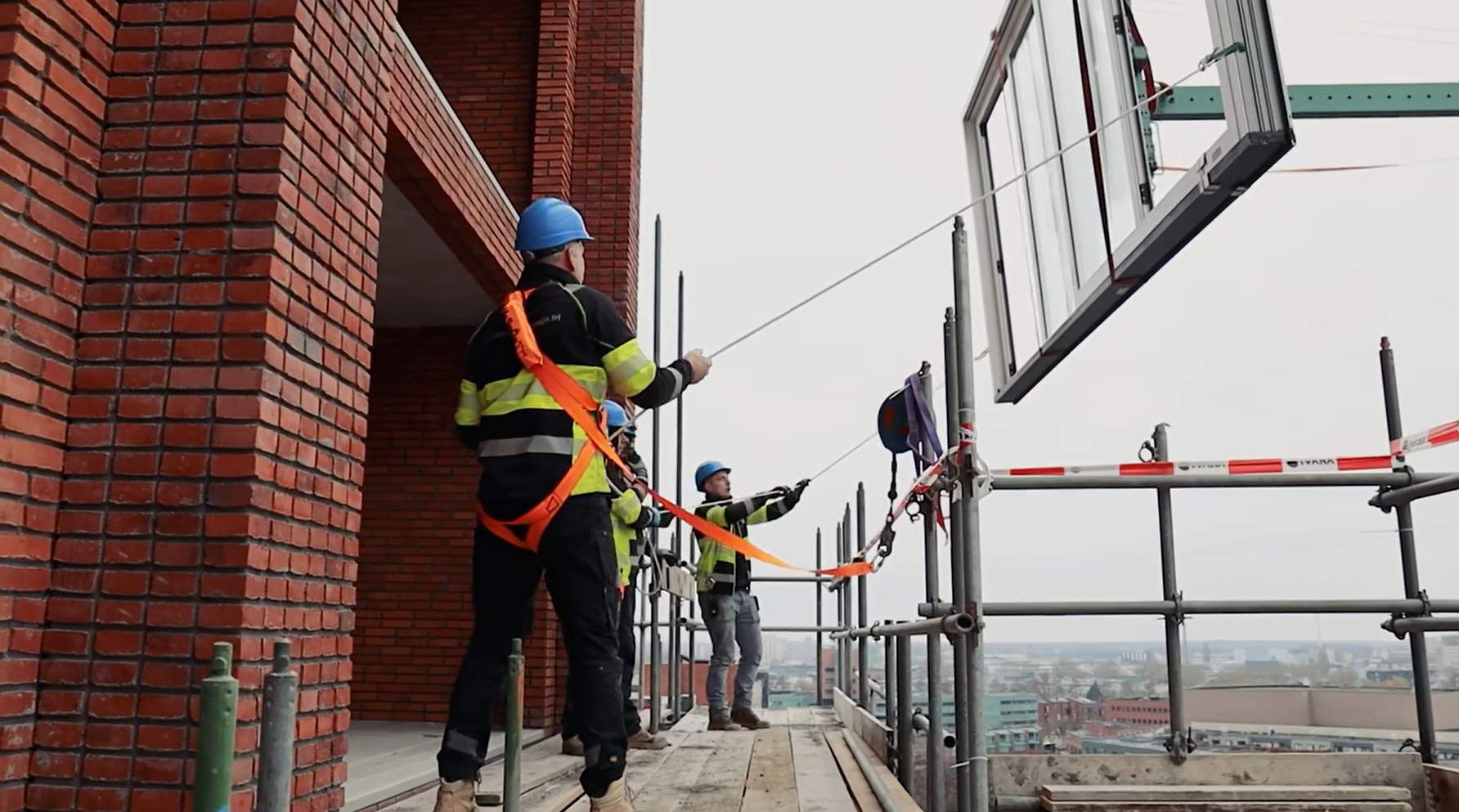 Voor de montage van de zware schuifpuien maken we gebruik van een torenkraan in combinatie met een steker en zuiger. Hierdoor worden onze monteurs fysiek minder zwaar belast en kunnen zij hun werk veilig en verantwoord uitvoeren. Een werkwijze die bijdraagt aan duurzame inzetbaarheid én het werk aantrekkelijker maakt voor onze mensen.