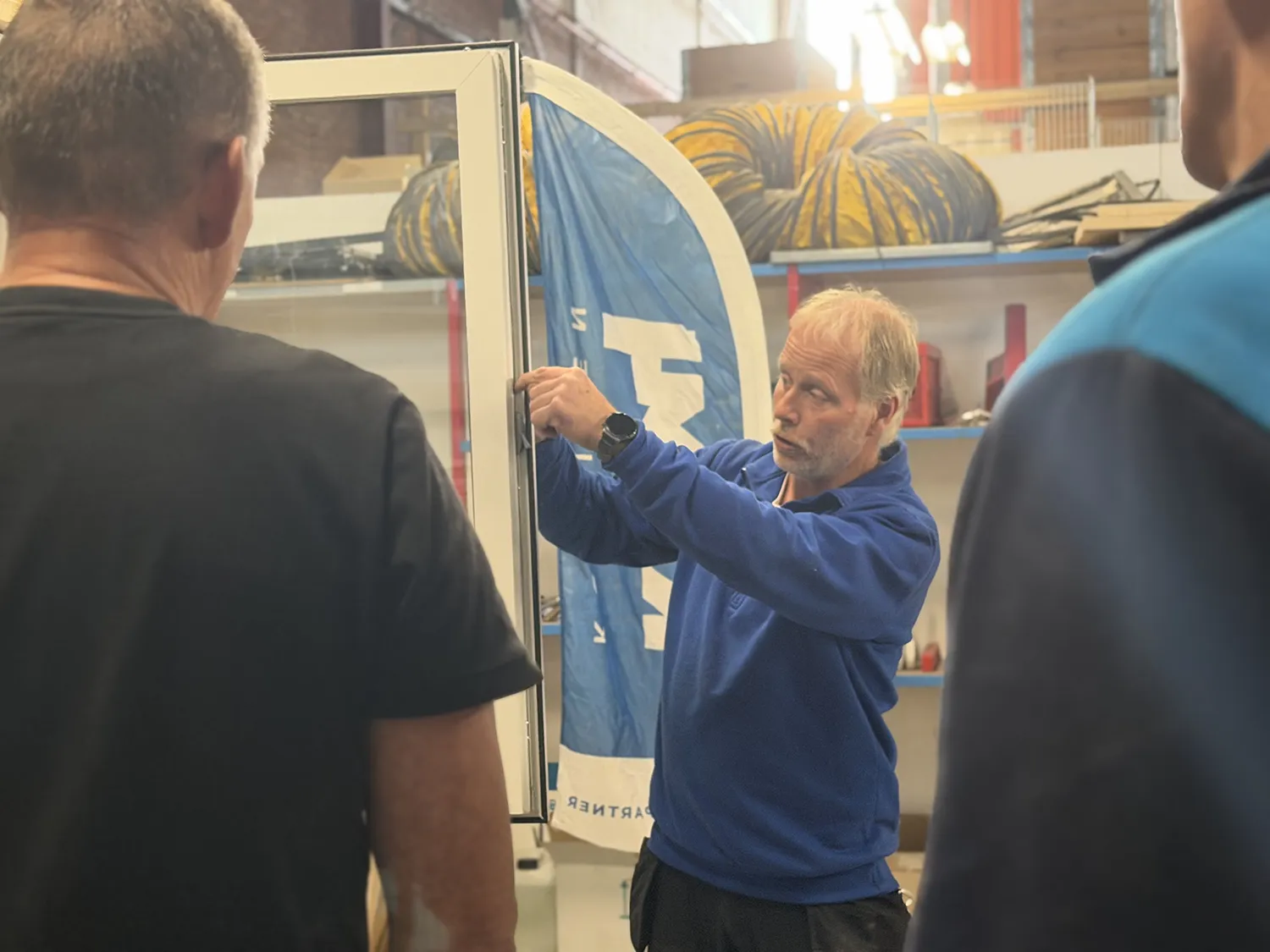 Onze allround monteurs Gerben en Renke gaven namens Kumij een praktische uitleg over de werking van het hang- en sluitwerk en het afstellen van de draaidelen van onze kozijnen. Na afloop kregen deelnemers een handig tasje mee met onderhoudsadviezen, stelsleutels en een glaslepel.